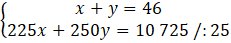 Na początku musisz wyliczyć ceny koszulek i par butów męskich i damskich z treści zadania. W kolejnym kroku musisz oznaczyć symbolami liczbę kobiet i mężczyzn, trenujących w tym klubie. Następnie musisz zapisać pierwsze równanie, w którym suma trenujących w tym klubie wynosi 46. Drugim równaniem będzie to, że suma kosztów garderoby kobiecej i męskiej wynosi 10 725.