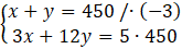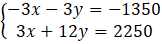 -3x – 3y + 3x + 12y = -1350 + 2250