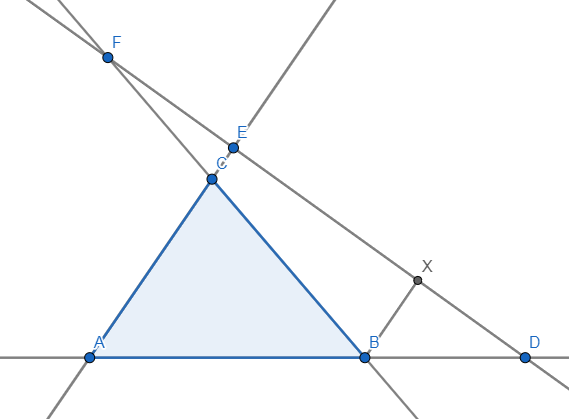 W tym zadaniu musisz udowodnić twierdzenie Menelaosa, dla punktów leżących na przedłużeniach boków trójkąta.