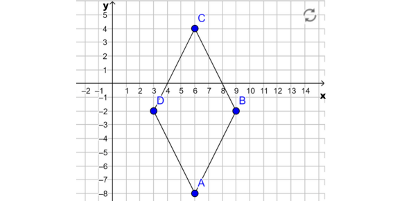W tym zadaniu wiedząc, że podane punkty (6, -8), (9, -2) i (6, 4) to wierzchołki rombu, ustal współrzędne czwartego wierzchołka.