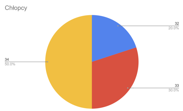 Najpierw zbierz odpowiedzi ankietowanych w tabeli. Następnie narysuj diagramy prezentujące dane dla każdej płci z osobna.