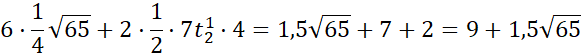 3 ∙ 0,25 ∙ 9 + 4 ∙ 0,25 ∙ 7 = 6,75 + 7 = 13,75