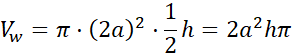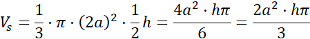 Bryła 1: różnica objętości walca o promieniu podstawy 2a i wysokości h oraz stożka o promieniu podstawy 2a i wysokości 0,5h