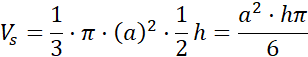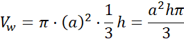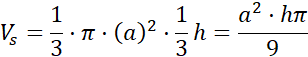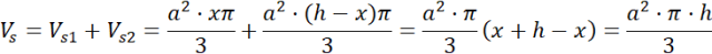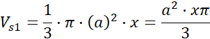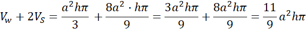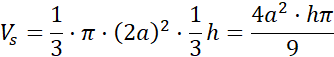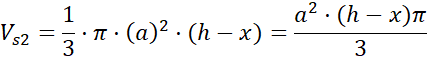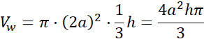 Bryła 3: różnica objętości walca o promieniu podstawy 2a i wysokości h oraz dwóch stożków: jednego o promieniu podstawy a i wysokości x, drugiego o promieniu podstawy a i wysokości h - x