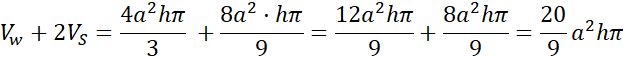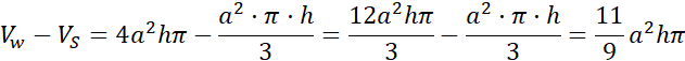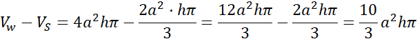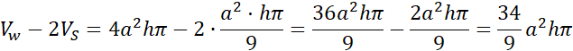 Bryła 2: różnica objętości walca o promieniu podstawy 2a i wysokości h oraz dwóch stożków o promieniu podstawy a i wysokości