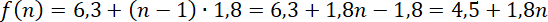 Za pierwszy kilometr podróżny zapłaci 6 zł 30 gr, a za każdy rozpoczęty kilometr zapłaci on 1 zł 80 gr, więc za n przejechanych kilometrów zapłaci on [