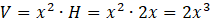 Przyjmij oznaczenia jak powyżej. Skorzystaj ze wzoru na objętość graniastosłupa i oblicz x, a następnie H.