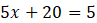 5x + 20 = 5, 6 – 2x = 12,
