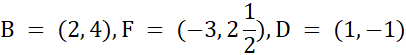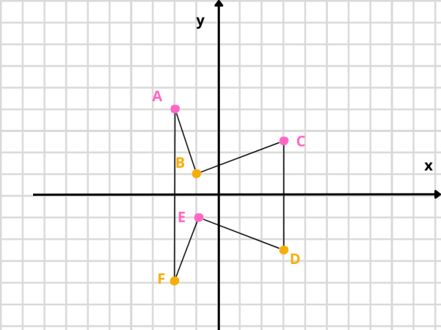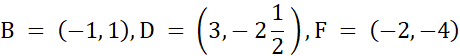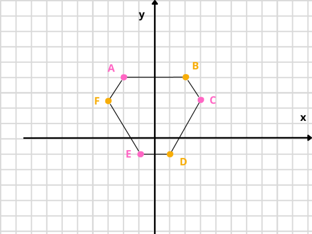 Wskaż współrzędne punktów B, D, F, jeśli figura ABCDEF jest osiowosymetryczna względem jednej osi układu współrzędnych, wiedząc, że: