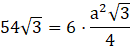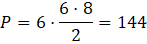 Pole podstawy tego ostrosłupa należy przyrównać do pola 6 trójkątów równobocznych. Otrzymane równanie należy przekształcić do otrzymania długości krawędzi podstawy. Pole powierzchni bocznej tego ostrosłupa składa się z 6 trójkątów o podstawie 6 i wysokości 8.