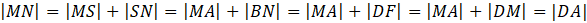 Skorzystaj w twierdzenia Pitagorasa w trójkątach DMS i DSF. Zauważ podobieństwo trójkątów SFN i BEN i na tej podstawie wykaż równość odcinków MN i AD.
