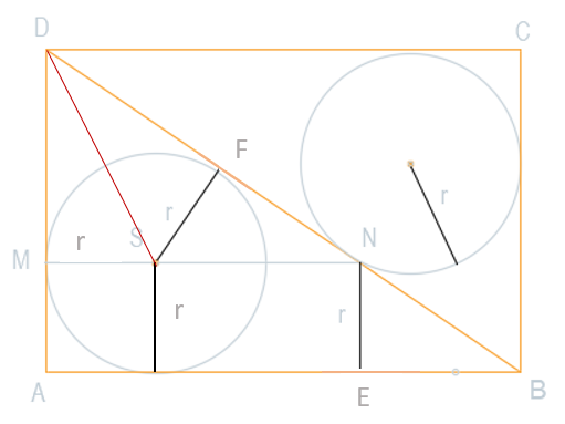 Prostokąt ABCD przedzielony został przekątną w trójkąty ABD i BCD wpisano okręgi styczne odpowiednio w punktach N i M. Udowodnij, że |MN| = |AD|