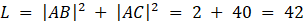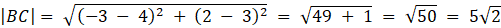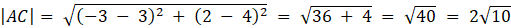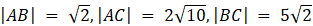 Długości odcinków AB, AC i BC wynoszą kolejno: