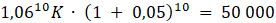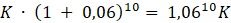 Jeśli kapitał K zostałby ulokowany na lokatę, gdzie przez pierwsze 10 lat oprocentowanie wynosiło by 6%, a przez następne 10 lat – 5%, to: