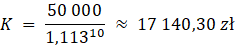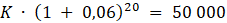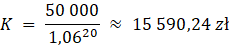 Niech K będzie kwotą początkową, jaka rodzice Hani wpłacili na lokatę na 20 lat. Wtedy: