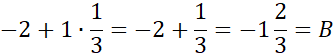 B jest 1 jednostkę na prawo od −2.