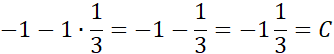 C jest jedną jednostkę na lewo od −1.