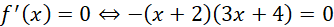 Stąd dwa punkty krytyczne. Zauważ, że funkcja nie zmienia znaku w punkcie -2 stąd brak ekstremum. Dla punktu