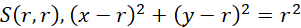 Ponieważ okrąg jest styczny do obu osi układu współrzędnych, jego środek oraz równanie w postaci kanonicznej mają postać: