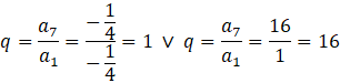 ODP: Iloraz ciągu geometrycznego wynosi 1 lub 16.