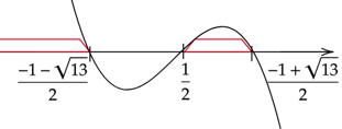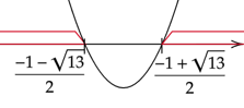 Zaznacz obliczone rozwiązania na osi i przedziały, gdy wykres jest nad osią. Wykres zacznij rysować od dołu, ponieważ współczynnik stojący przy