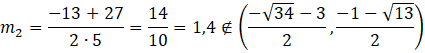 Oblicz deltę i miejsca zerowe powyższego równania. Sprawdź, które z nich należy do ustalonego wcześniej przedziału.