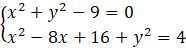 Podstaw otrzymane równanie prostej do jednego z równań okręgu w postaci kanonicznej: