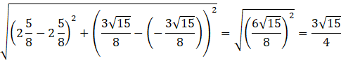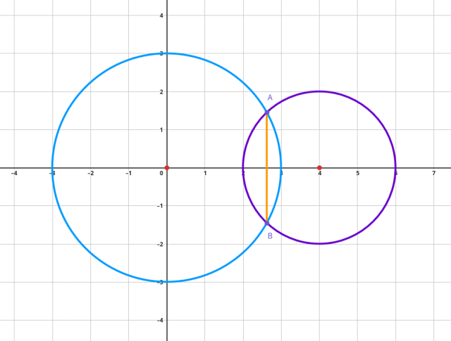Wykorzystaj punkty przecięcia się okręgów, by obliczyć wspólnej cięciwy odcinka ze wzoru: