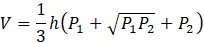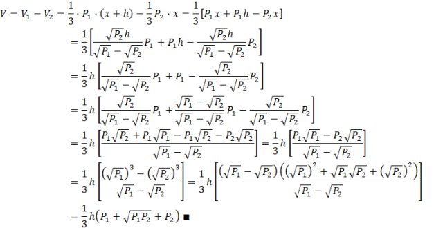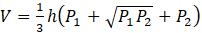 Objętość ostrosłupa ściętego o danej wysokości i polach podstaw wyraża się wzorem: