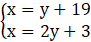 Różnica dwóch liczb naturalnych x i y jest równa 19.