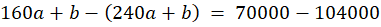 Koszt budowy szerokiego na 2m chodnika opisuje pewna funkcja liniowa. Wiedząc, że koszt budowy takiego chodnika długości 160m to 70000zł, a długości 240m to 104000zł, wyznacz koszt budowy chodnika długości 180m.