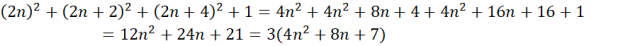 więc cały iloczyn dzieli się przez 3, czyli suma kwadratów trzech kolejnych liczb parzystych naturalnych powiększona o 1 dzieli się przez 3.