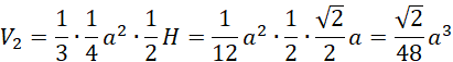 Ostrosłup o długości krawędzi równej a przecięto płaszczyzną w połowie jego wysokości. Oblicz objętość i pole powierzchni całkowitej otrzymanej bryły ściętej.