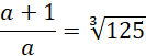 Dany jest sześcian 𝐴 o krawędzi długości 𝑎. Sześcian 𝐵 utworzono poprzez dodanie do długości krawędzi 𝐴 1 dm. Wiedząc, że objętość sześcianu 𝐵 jest 125 razy większa od objętości 𝐴, oblicz 𝑎.