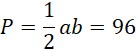 . Obliczamy wartość iloczynu ab i wstawiamy do wzoru na pole trójkąta.