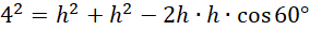 Oblicz wysokość ściany bocznej z twierdzenia cosinusów. Wyznacz krawędź boczną z twierdzenia Pitagorasa.