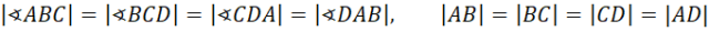 Kwadrat ma wszystkie kąty proste i wszystkie boki równe, więc:
