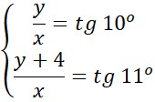 Dwukrotnie skorzystaj z funkcji tangens. Zauważ, że powstanie układ dwóch równań z dwoma z dwoma niewiadomymi i na tej podstawie wyznacz szukaną odległość.