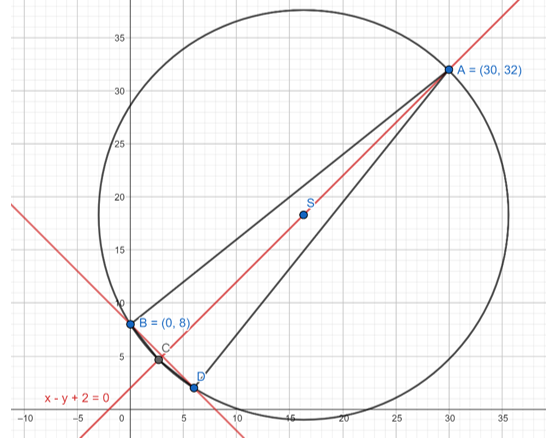 Zauważ, że prosta BD jest prostopadła do prostej AC. Więc jej współczynnik kierunkowy jest przeciwny i odwrotny.