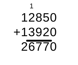 Dodaj do siebie liczby osób mieszkające na każdy z osiedli, by dostać, ile osób mieszka na nich razem. Wykonując dodawanie pisemne, najpierw należy w słupku dodać do siebie cyfry jedności. Jeśli otrzymana liczba jest dwucyfrowa, należy cyfrę jedności takiego wyniku zapisać pod słupkiem cyfr jedności, a cyfrę dziesiątek z wyniku trzeba przenieść dalej poprzez dopisanie tej cyfry nad kolejnym w lewo słupkiem, czyli słupkiem cyfr dziesiątek. Przy dodawaniu kolejnego słupka, do wyniku należy dodać przeniesioną cyfrę ze słupka wcześniej. W taki sam sposób należy dodawać każdy kolejny słupek, zaczynając od lewej i idąc do prawej. Jeśli w ostatnim słupku wyjdzie liczba większa od 10, to już nie wolno przenosić dalej, bo nie ma kolejnego słupka, lecz należy napisać całą liczbę.
