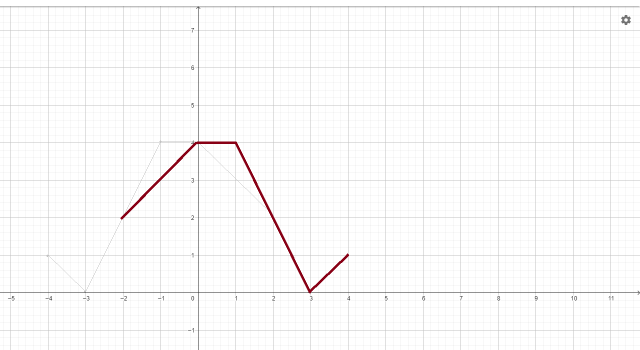 Punkty wykresu należy przekształcić przez symetrię względem osi y i przesunąć w górę o 2 jednostki. Kolorem szarym przedstawiono wykres funkcji y = f(-x), a kolorem bordowym funkcję y = f(x).