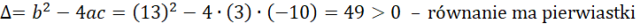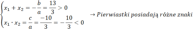 Musisz obliczyć wzory Viete’a z podanego równania i na podstawie wyników oszacować znaki pierwiastków.
