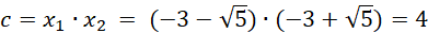 Musisz obliczyć współczynniki równania stosując wzory Viete’a.
