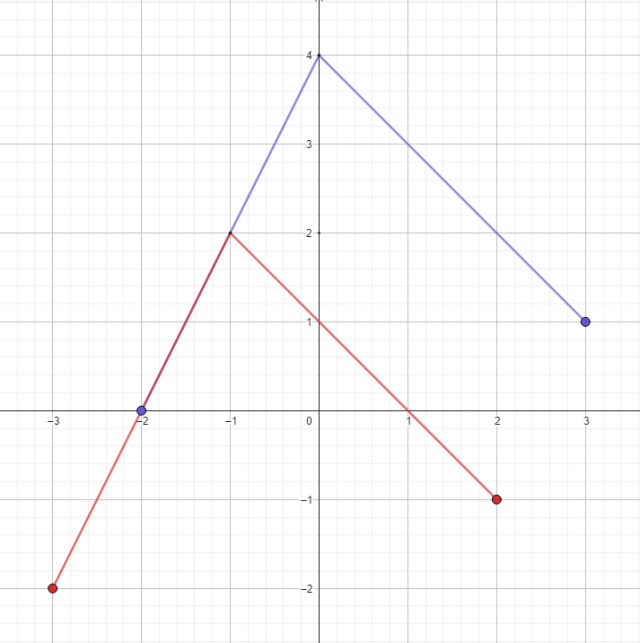Przesunięto wykres funkcji f o 1 jednostkę w prawo i 2 jednostki w górę.