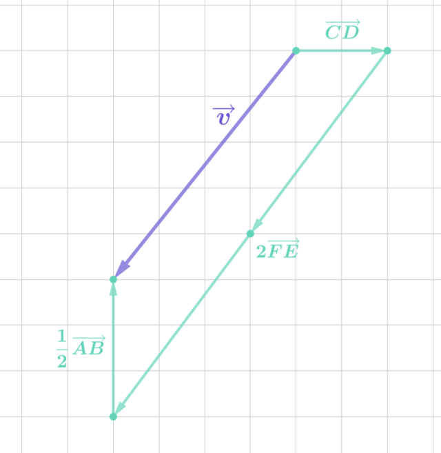 zaczepiając podane wektory: kolejno początek jednego na końcu poprzedniego. Następnie połącz początek pierwszego wektora z końcem ostatniego (i ze zwrotem do tego punktu).