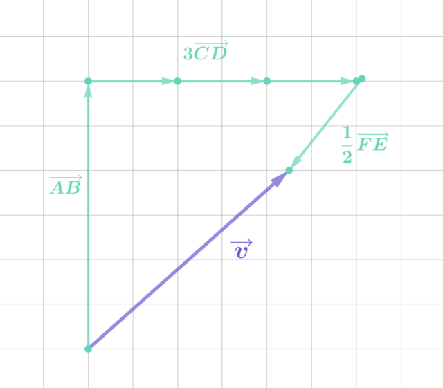 zaczepiając podane wektory: kolejno początek jednego na końcu poprzedniego. Następnie połącz początek pierwszego wektora z końcem ostatniego (i ze zwrotem do tego punktu).