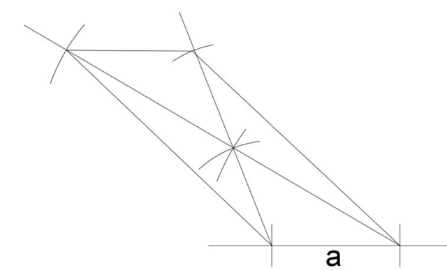 Odłóż odcinek a na prostej i wykreśl łuk o promieniu równym