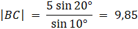 Podaj pozostałe boki i kąty trójkąta ABC |AB| = 5, |∢CAB| = 20°, |∢ABC| = 150°