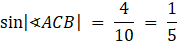 Znajdź miary kątów trójkąta ABC o bokach |AB| = 4 i |BC| = 3 wpisanego w okrąg o promieniu długości 5.