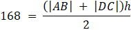 Pole trapezu wynosi 168, więc można wyznaczyć jego wysokość: